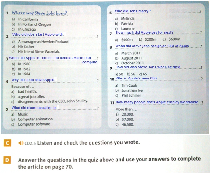 1.2.3 Open your Market Leader book on page 70: Develop exercises A to G of Language Focus.